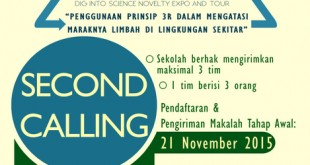 Tantang semangat mudamu dengan ikut berkompetisi melalui ajang yang satu ini !! DISCOVER : Dig Into Science Novelty Expo and Tour Lomba Karya Tulis Ilmiah dengan tema : “Penggunaan Prinsip 3R (Reduce, Reuse, Recycle) dalam Upaya Mengatasi Maraknya Limbah di Lingkungan Sekitar” Perlombaan dilakukan oleh 1 kelompok (3org) & dibagi …